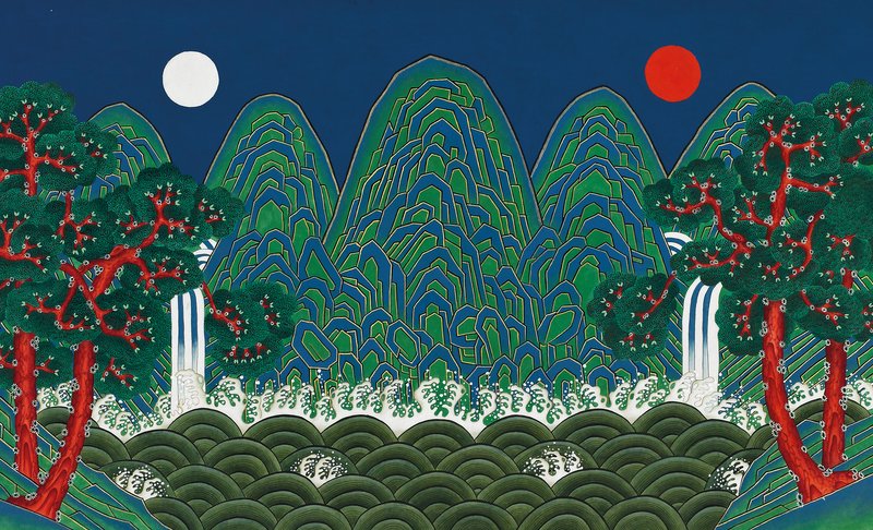 Irworobongdo is a symbolic painting depicting the sun, moon, and five peaks, embodying the majesty of the Joseon royal court. It is prominently displayed on a folding screen in the throne hall of a palace in South Korea.
